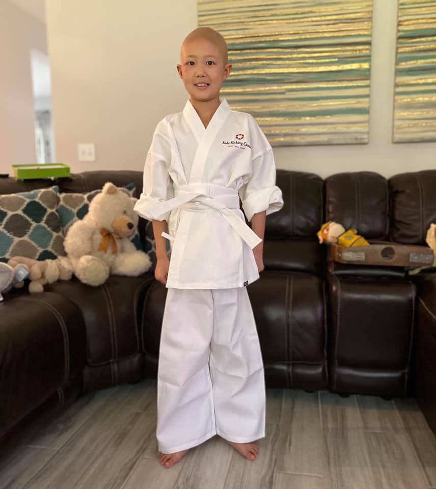 “Things changed dramatically last October, when Ave was invited to participate in a virtual martial arts therapy class hosted by Kids Kicking Cancer. A few months before, Ava became fascinated with all things karate. We had a hunch this would be an exciting way to bring some joy into her life. Little did we know it would make such an amazing difference.”