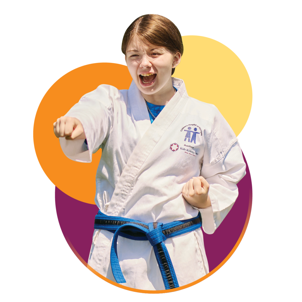Knowing she’d always wanted to do karate, her Nana and Papa found KKC and brought her to a Heroes Circle program. “After the class on the drive home, I was hungry for once,” Haley recalls.